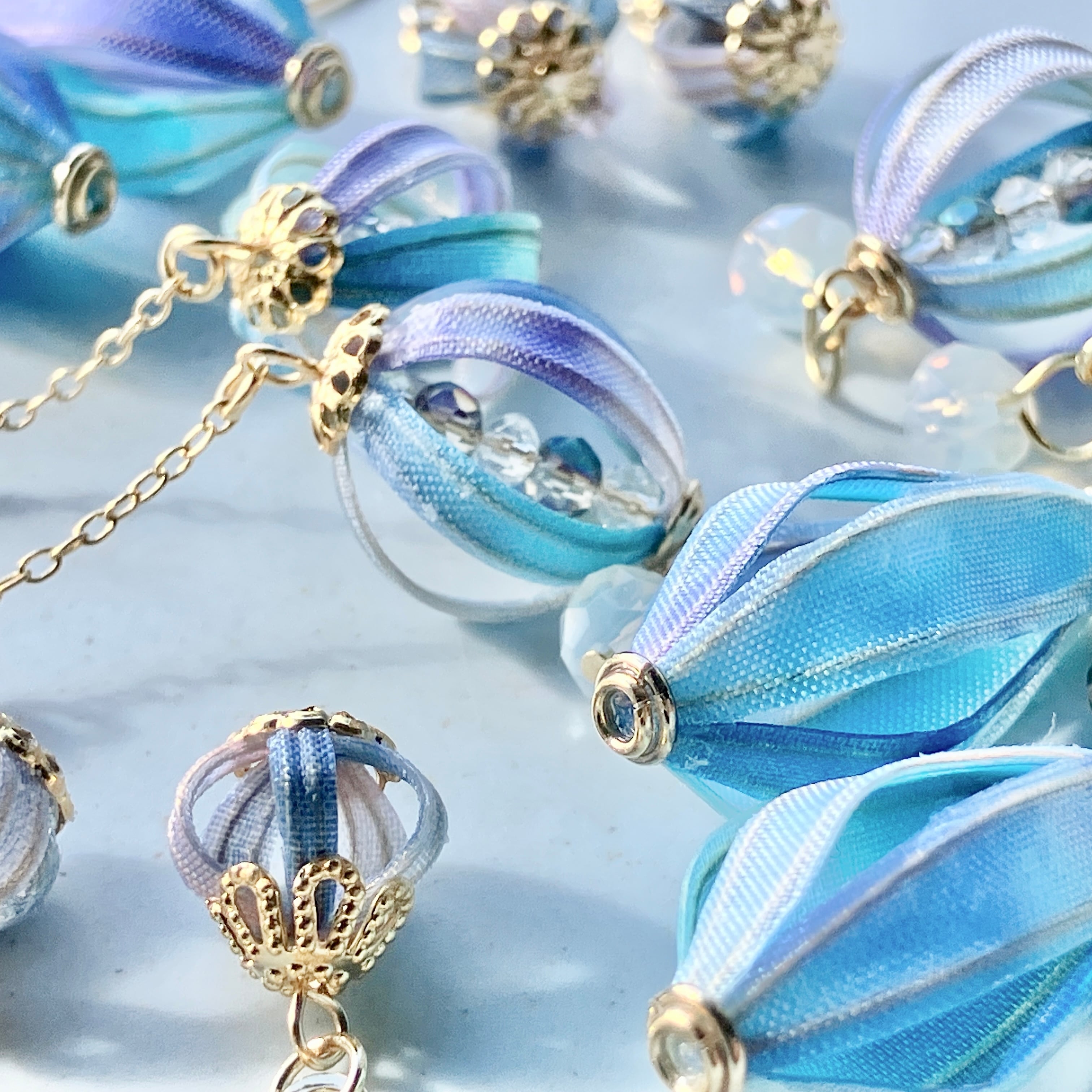 くすみカラーの雫SORATSUMIビーズのピアス(イヤリング)