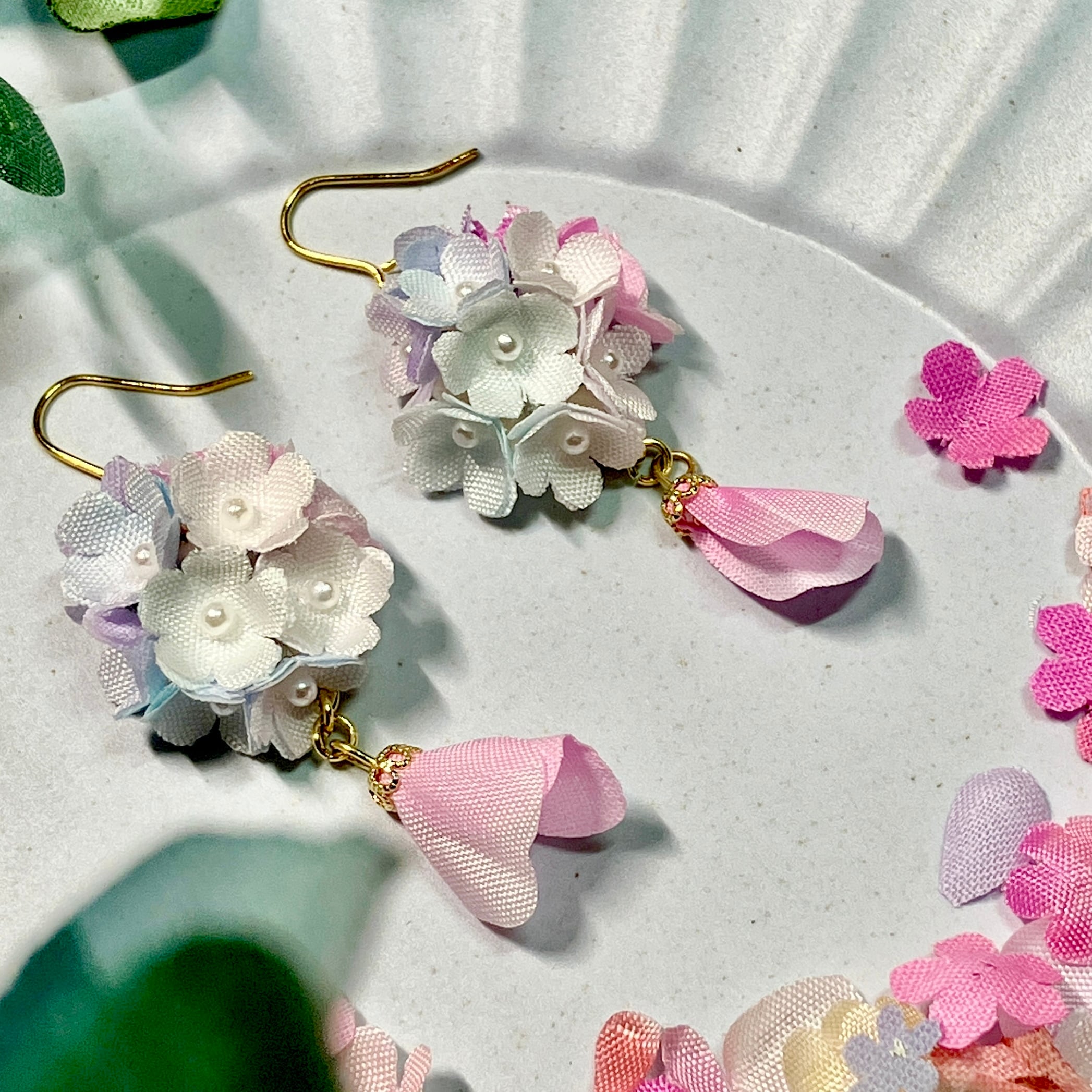 布花の大きな特徴であるその軽さ、存在感のあるアクセサリーを着けたいけど耳への負担が少ないものが欲しい、そんなあなたにぴったりのアクセサリーです。
