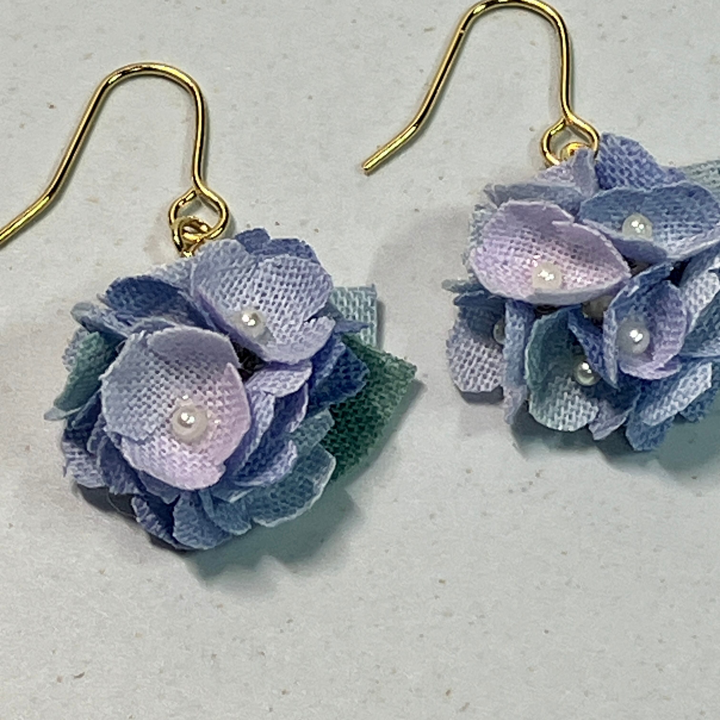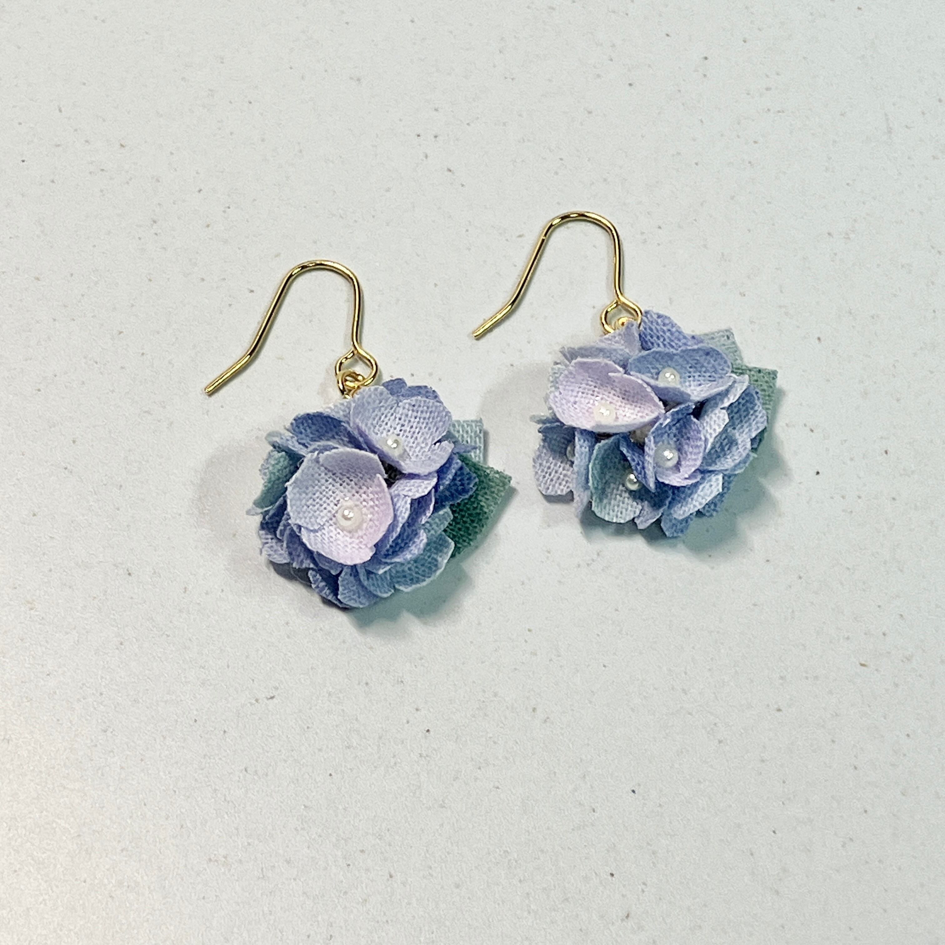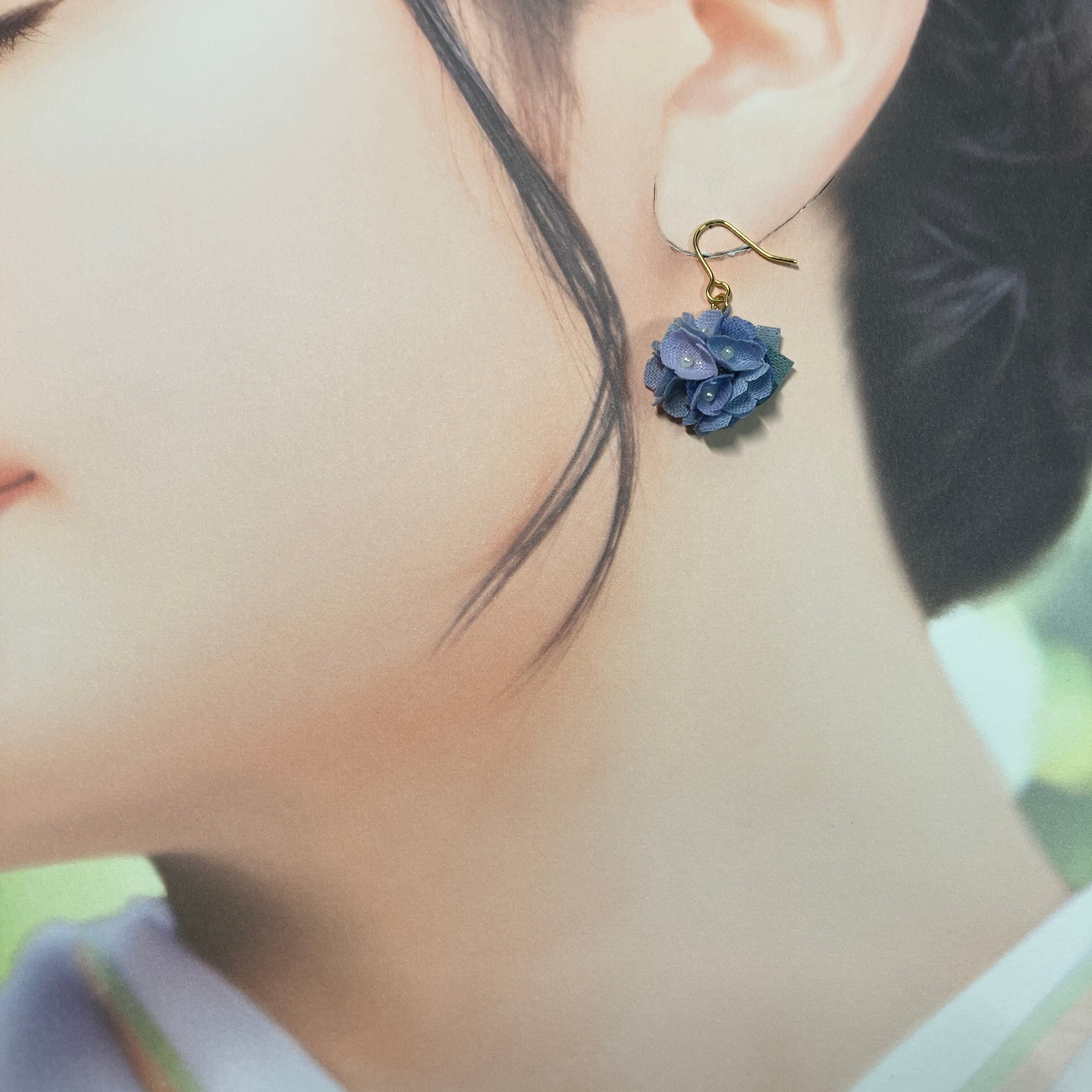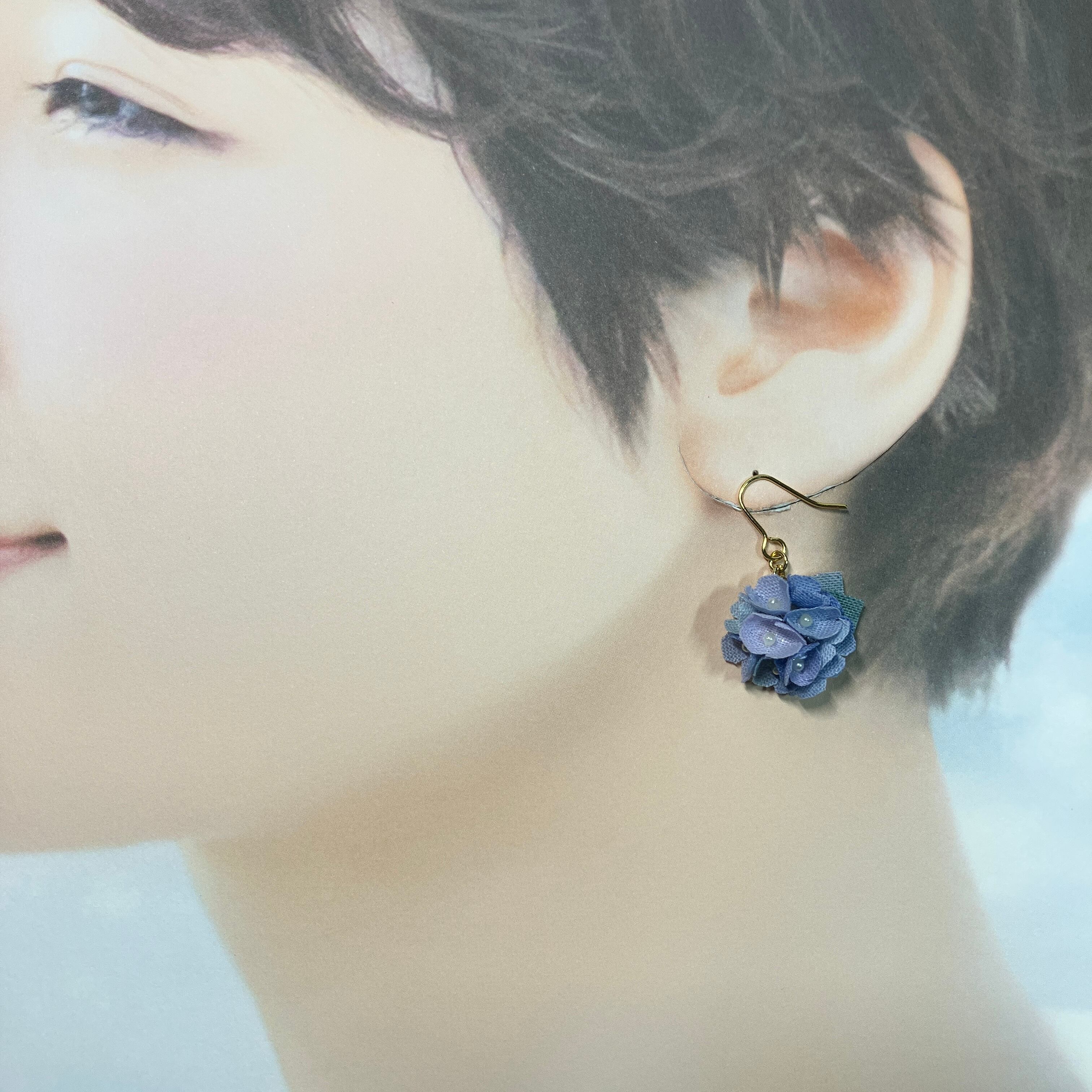 心和むくすみカラーのブルーのリトルフラワーピアス(イヤリング)