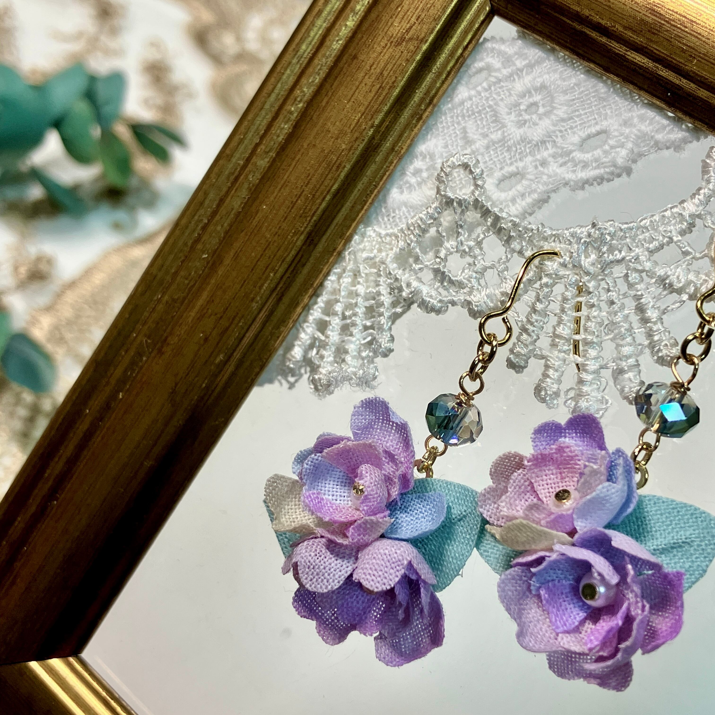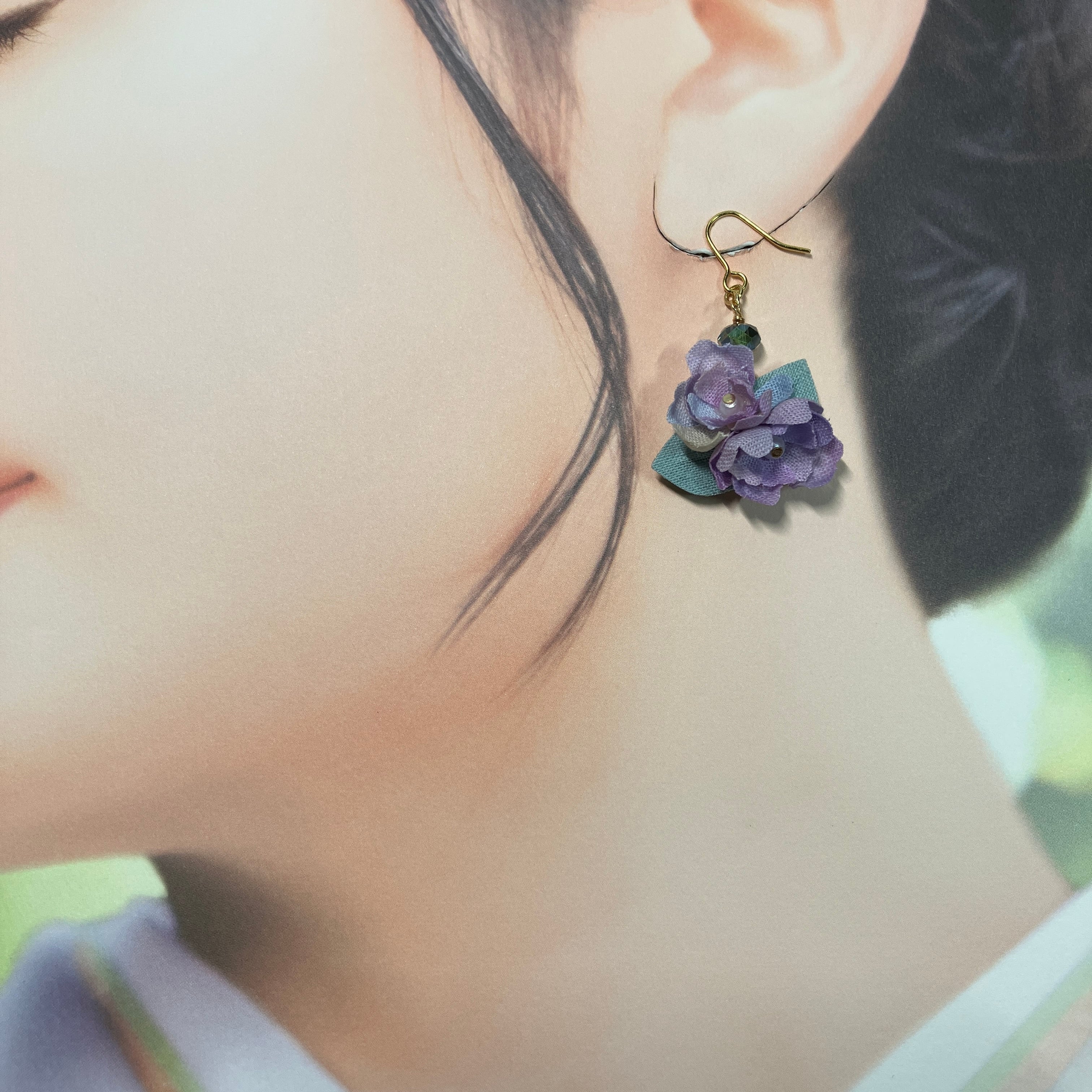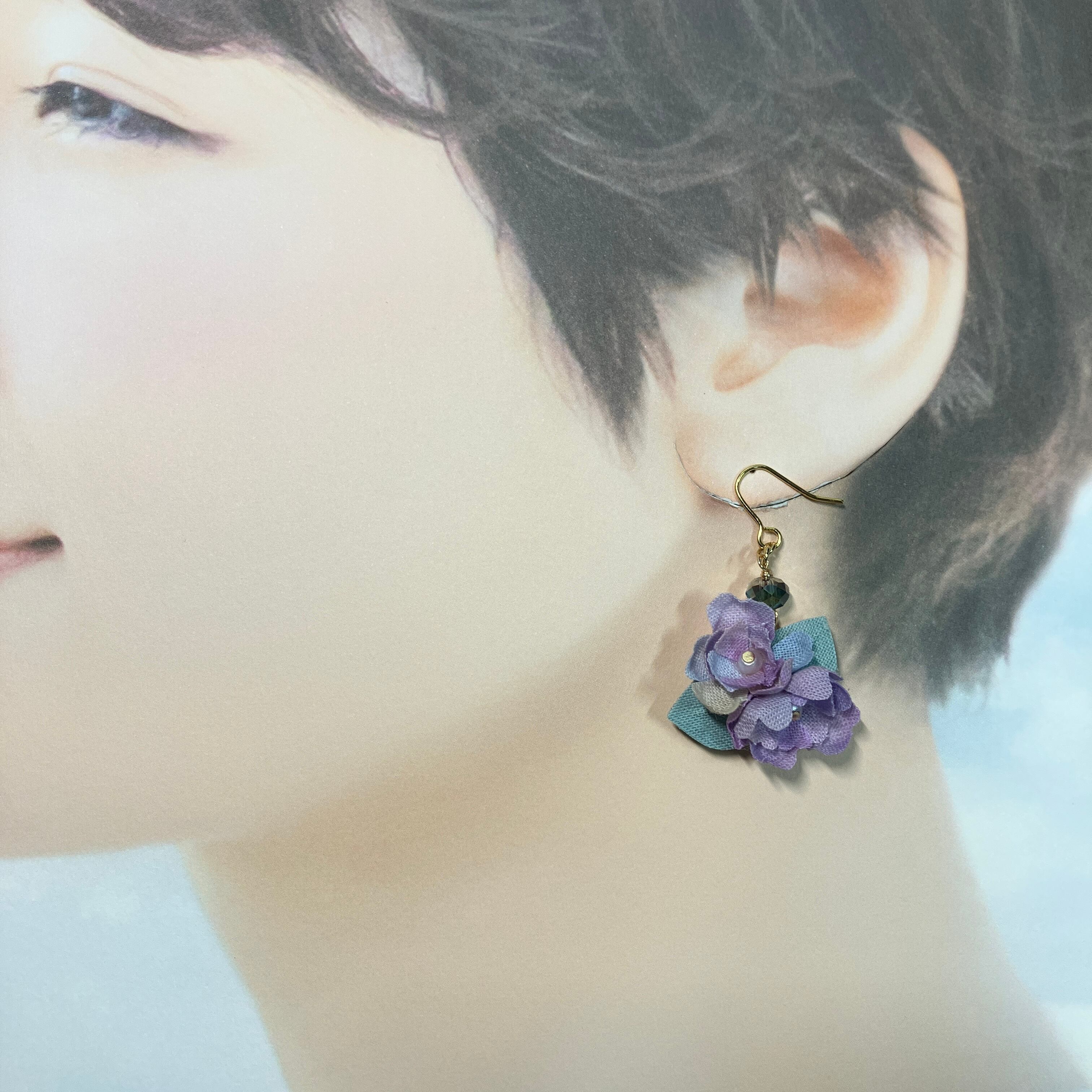 心和む柔らかな紫色の花がふたつ並んだピアス(イヤリング)