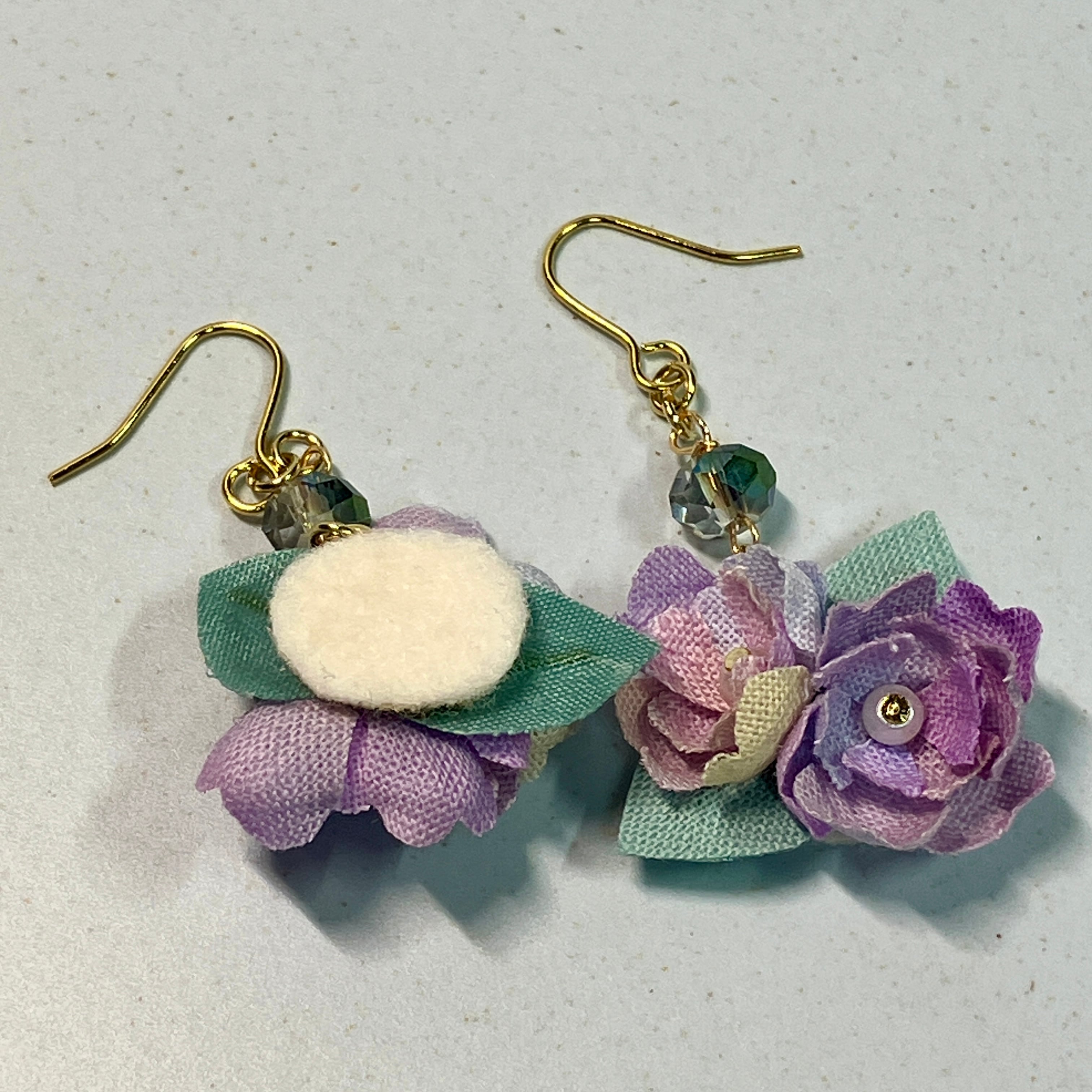 優しい紫色が魅力の「薄紫の花がふたつ並んだピアス(イヤリング)」。2つの小花が耳元で華やかに揺れ、柔らかな印象を演出します。布で作られた軽やかなアクセサリーは、デイリーユースだけでなく特別なシーンにもぴったり。アクセントのガラスビーズが、さりげなく華を添えます。心地よい着け心地で、あなたのコーディネートに優しさをプラスします。