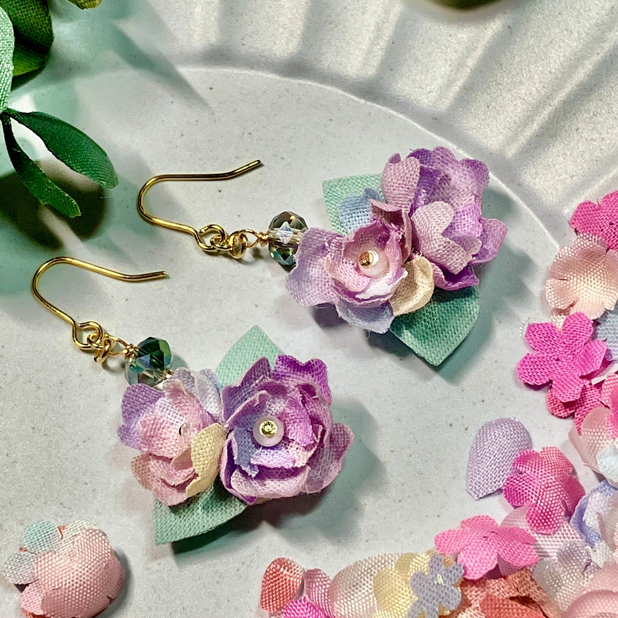 布花はとても軽いのが大きな特徴の一つ、耳への負担は減らしたい、そんな方にぴったりのアクセサリーです。