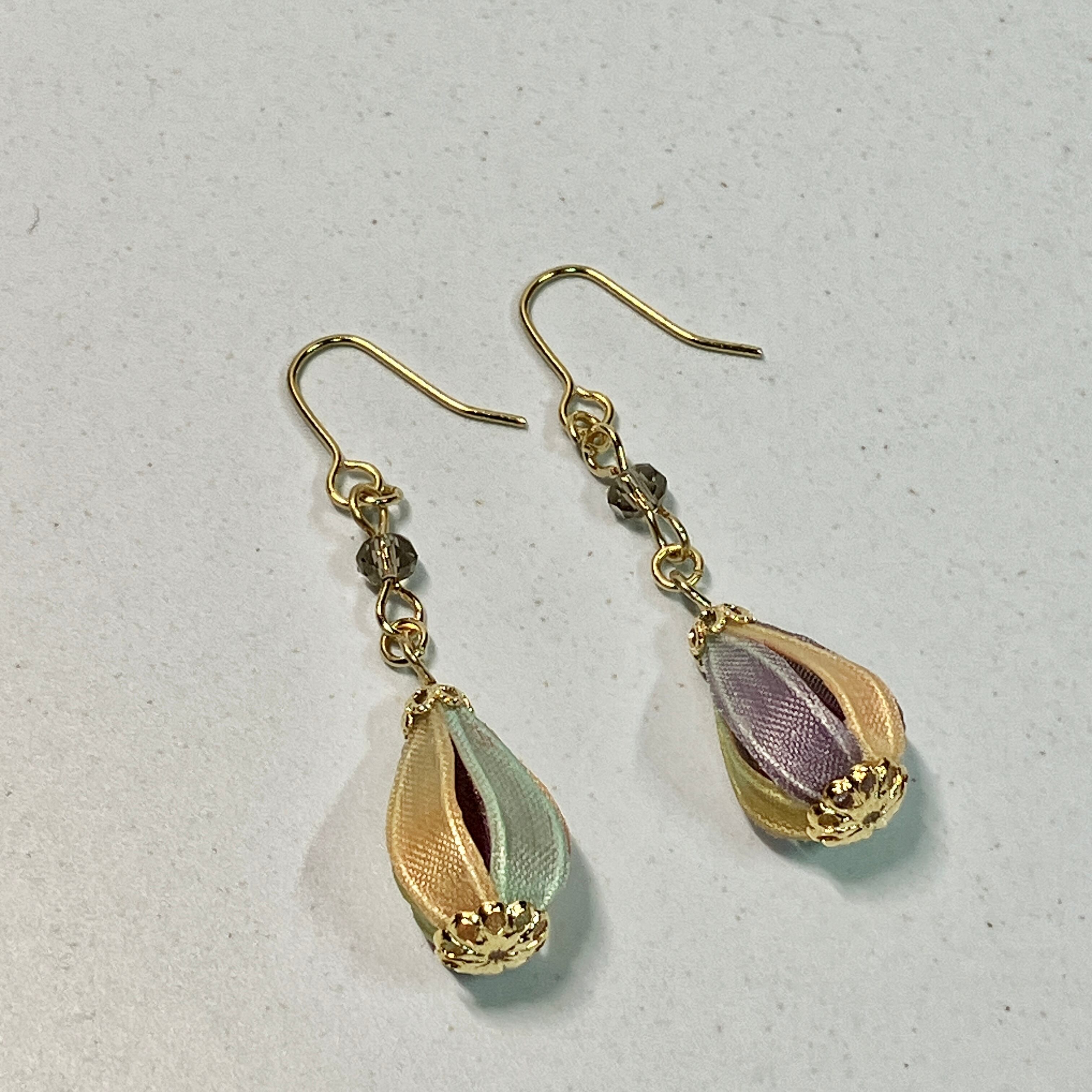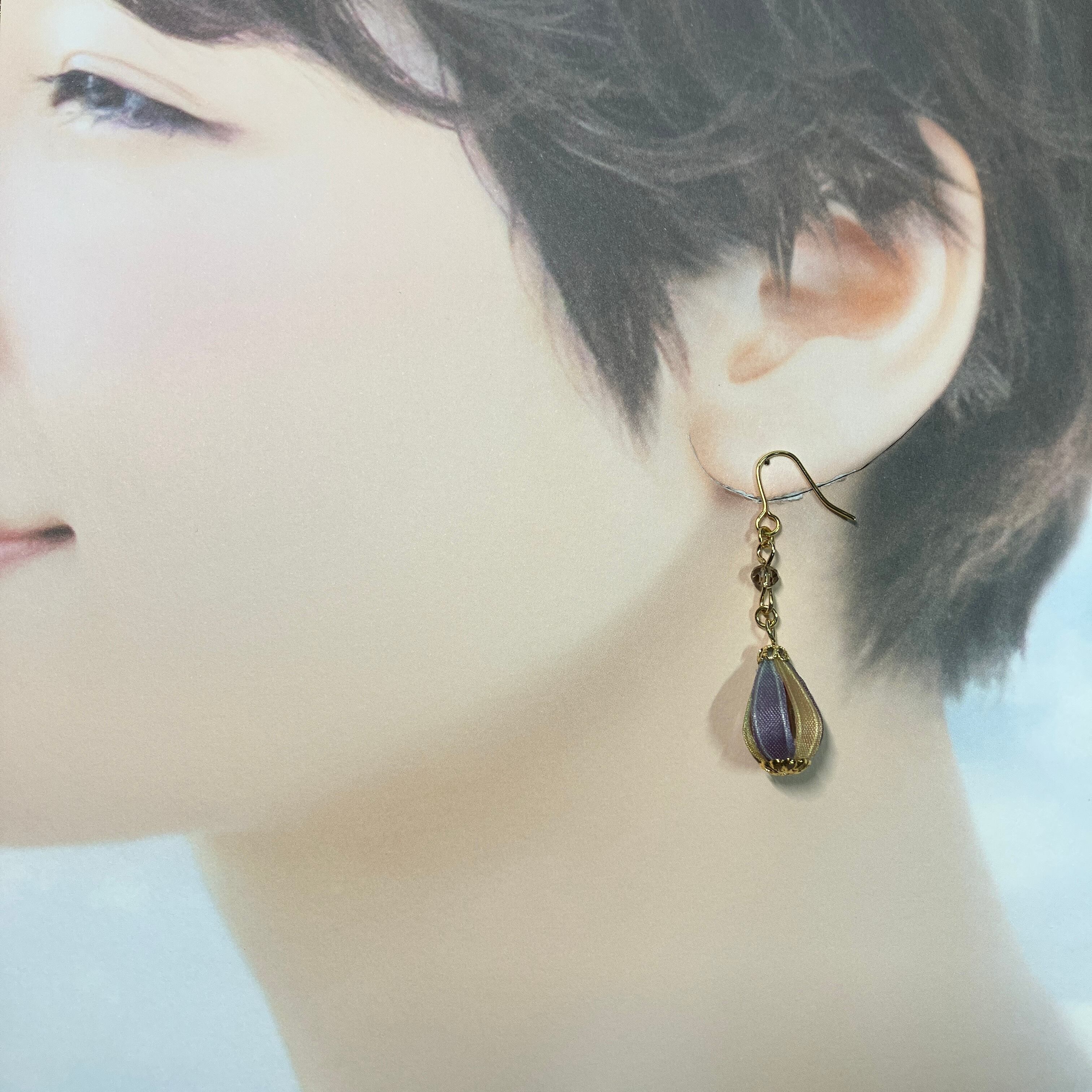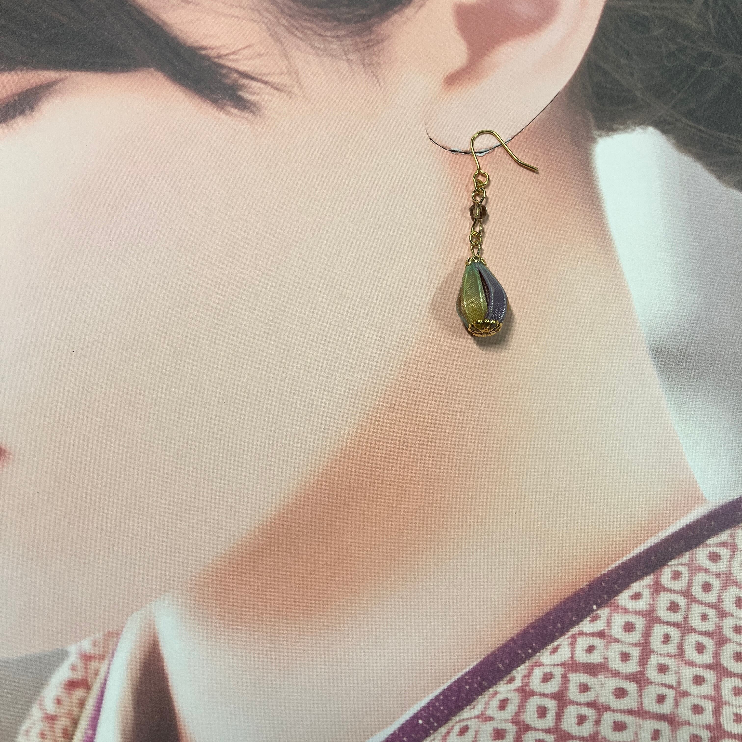 心和むくすみカラーのオリジナル雫形布ビーズピアス(イヤリング)