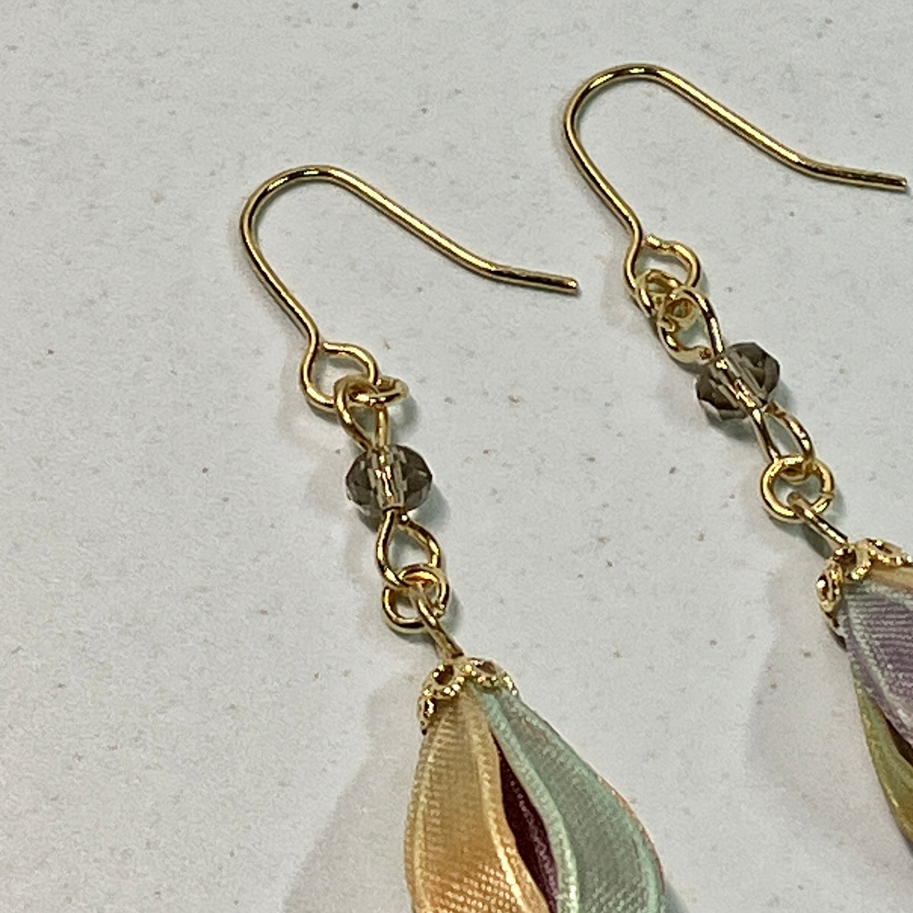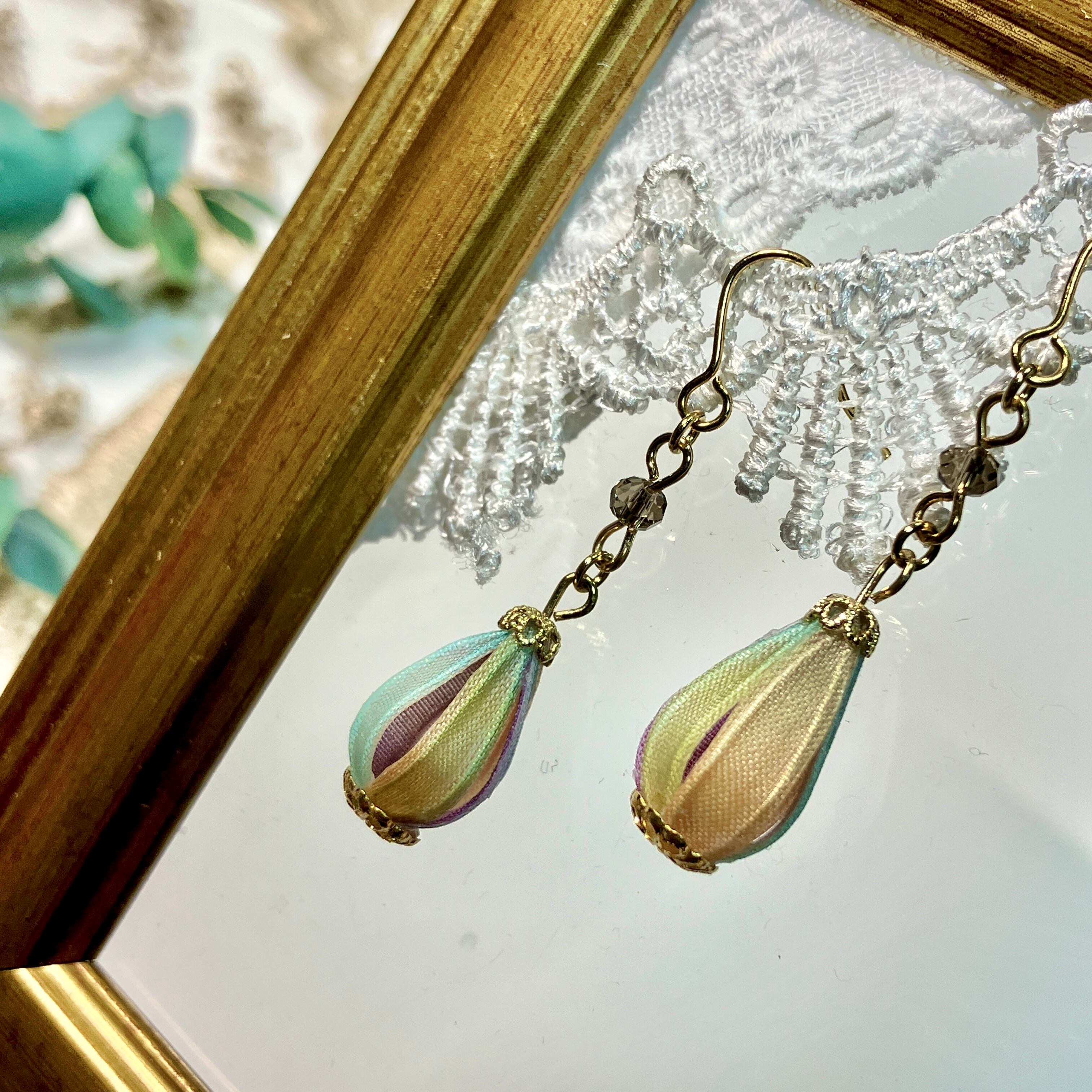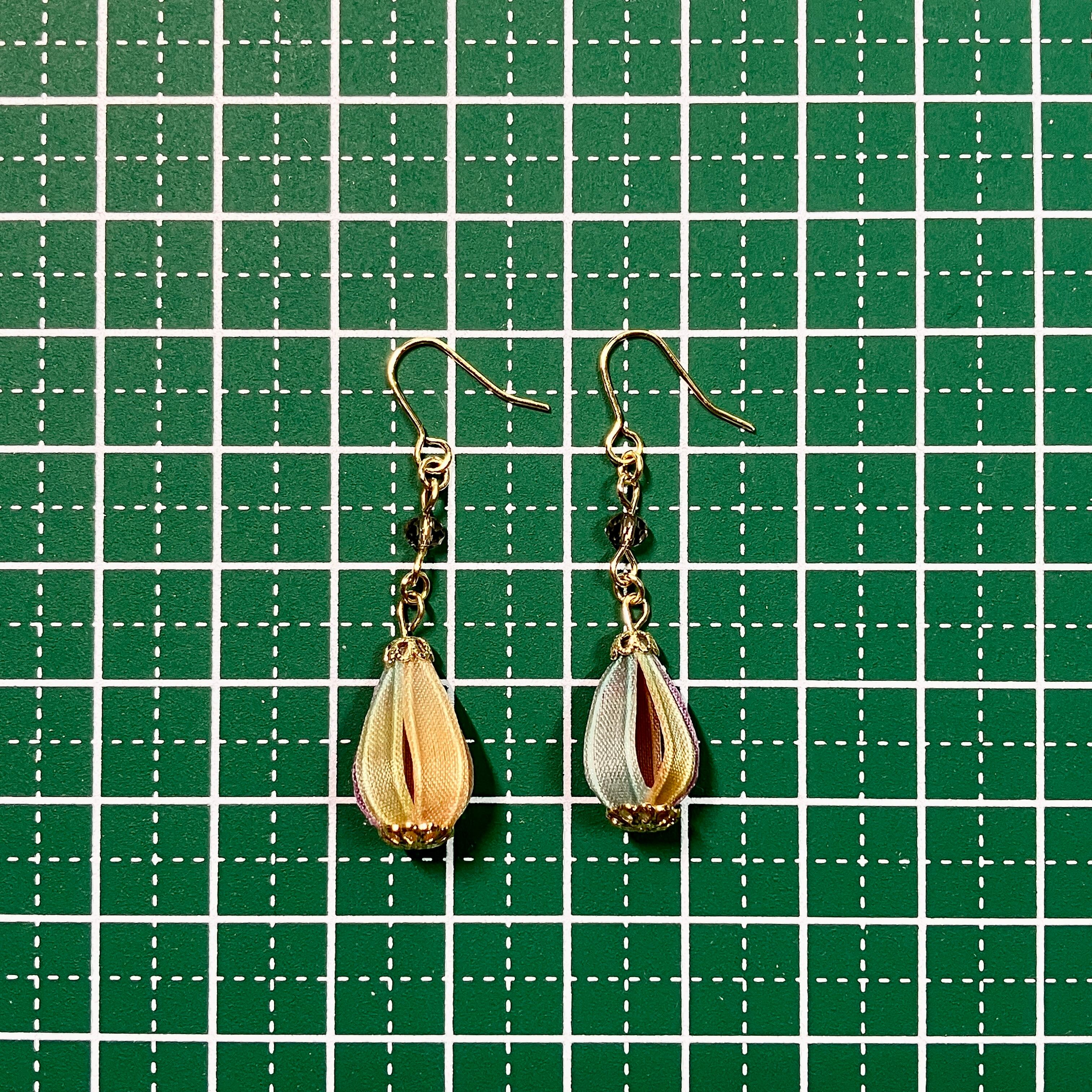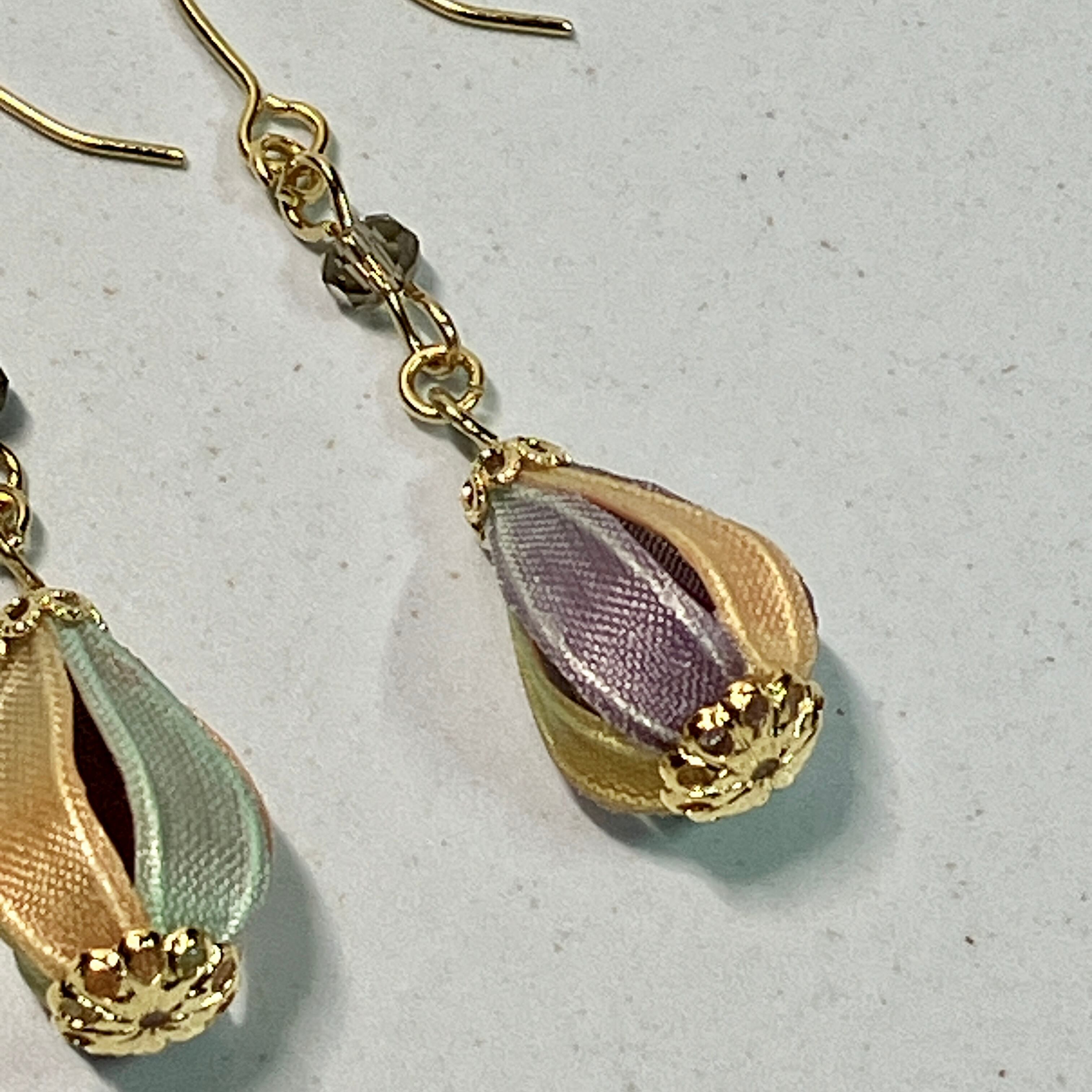 心和むくすみカラーのオリジナル雫形布ビーズピアス(イヤリング)