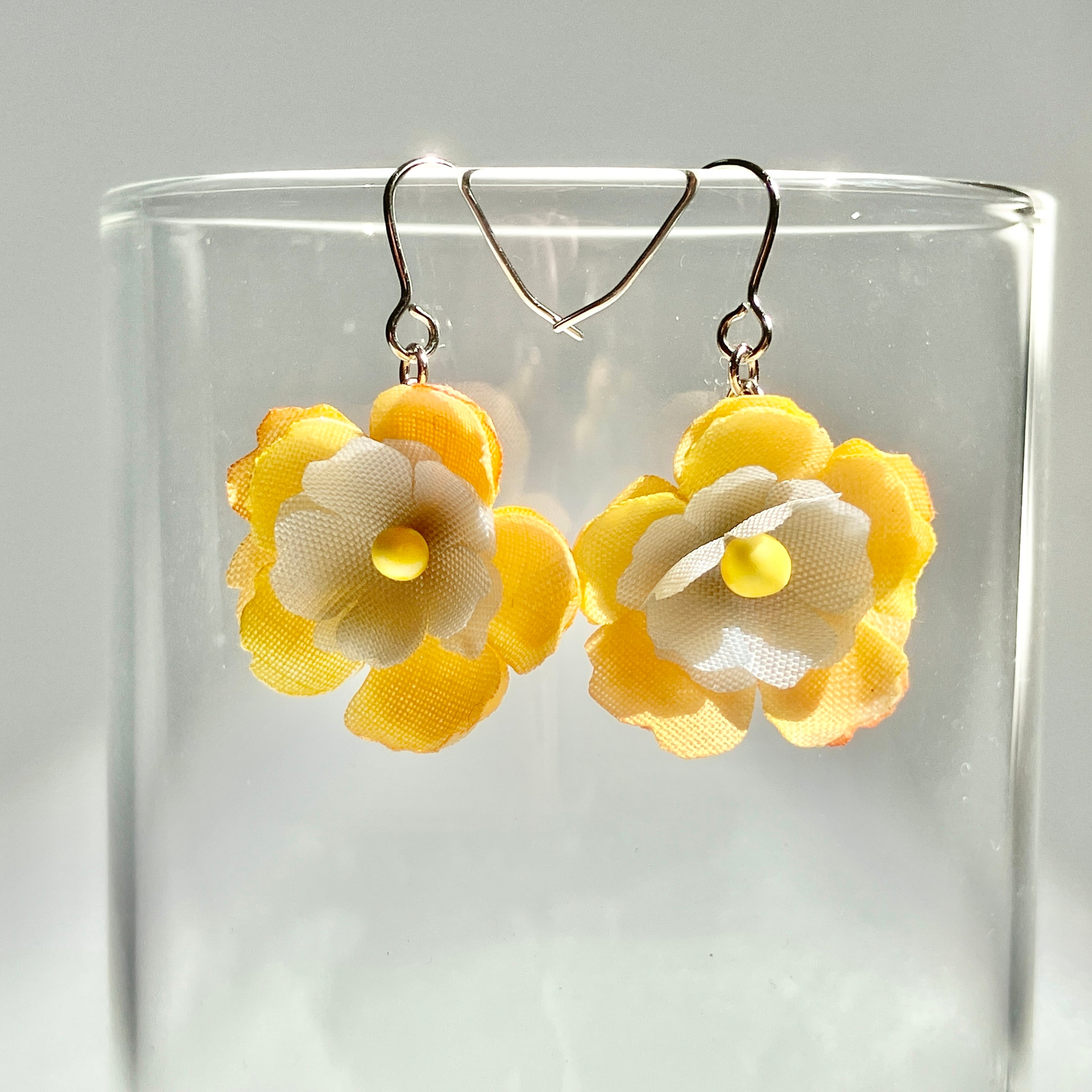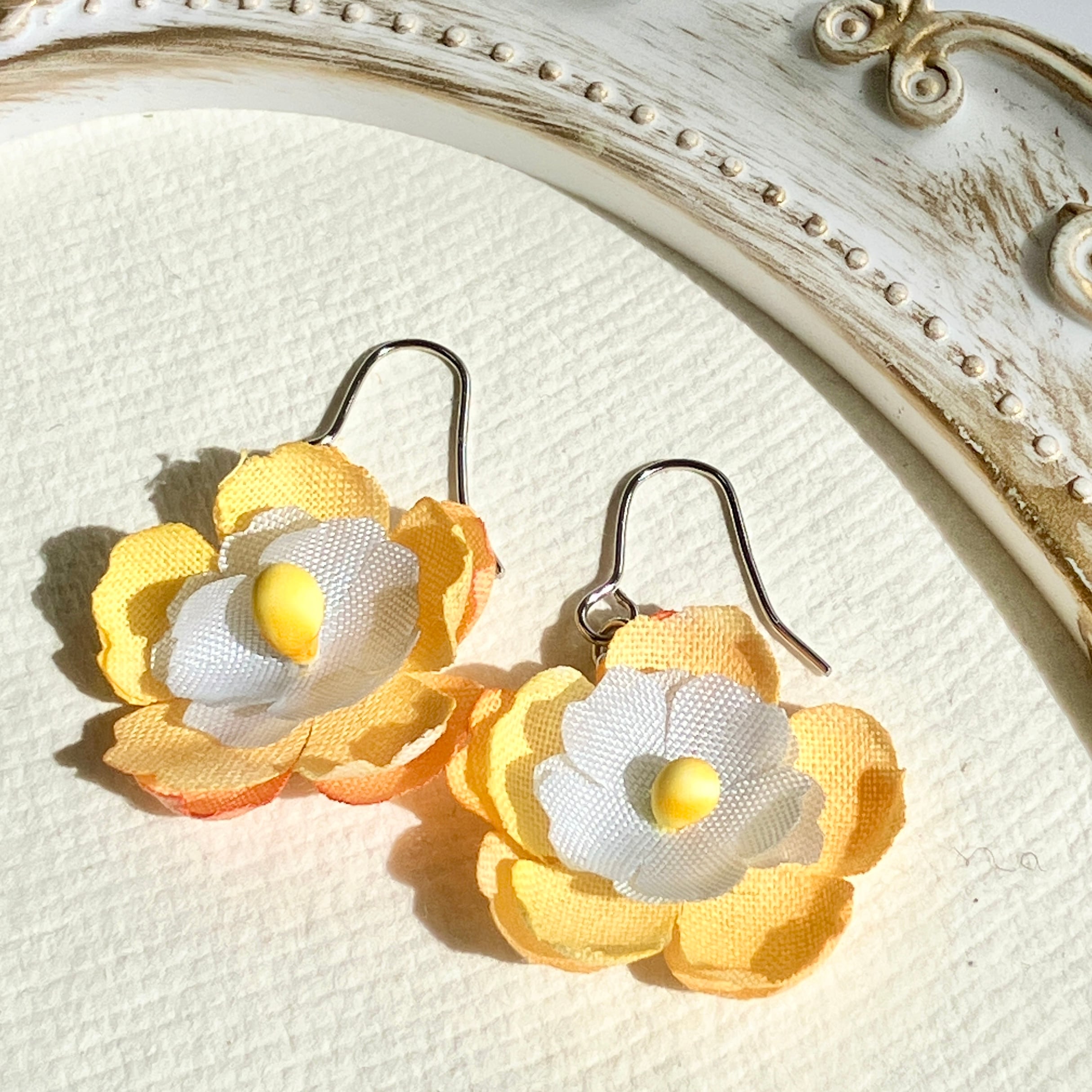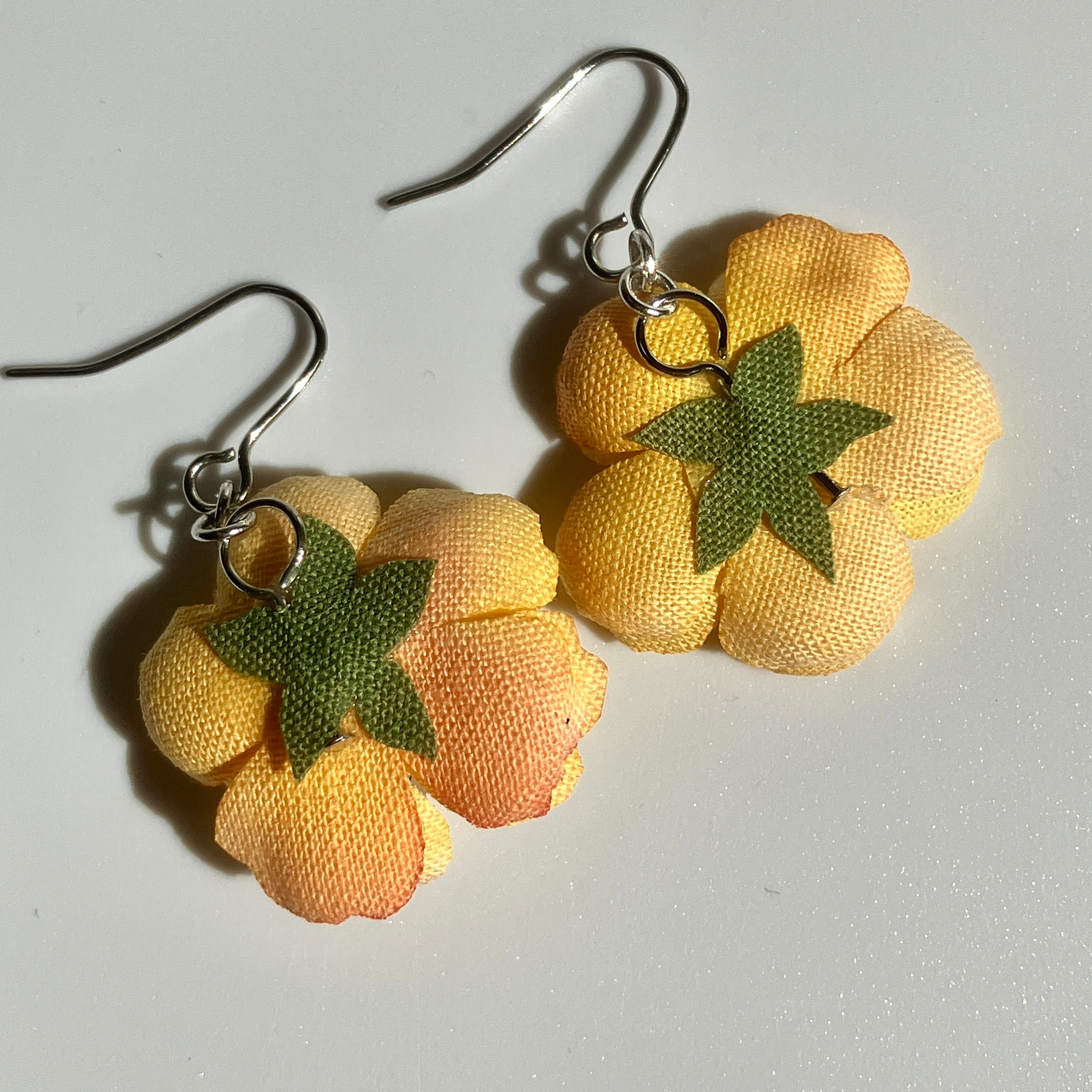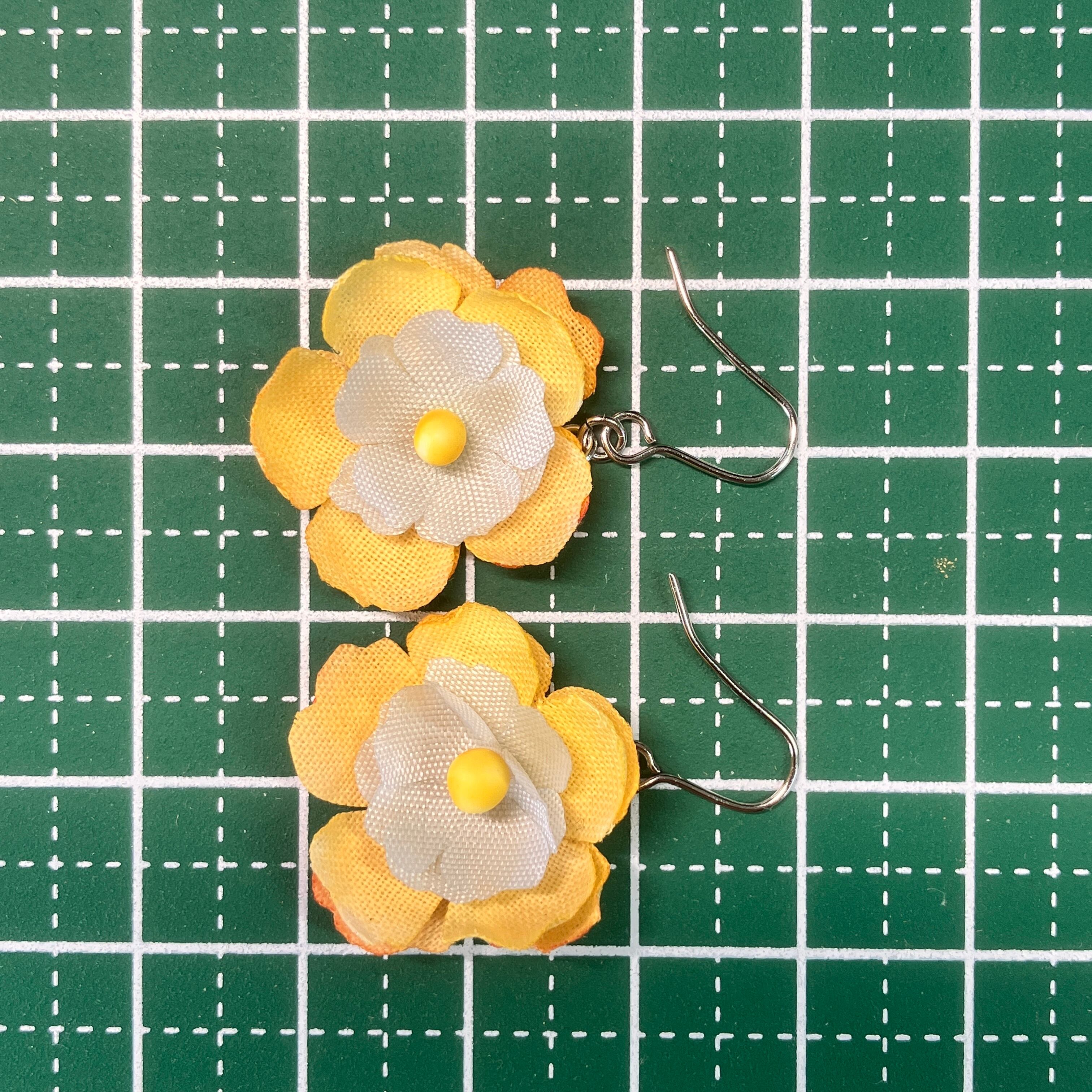 【一点もの】手染め布花《彩》黄色い花ピアス(イヤリング交換可) 軽い イエロー