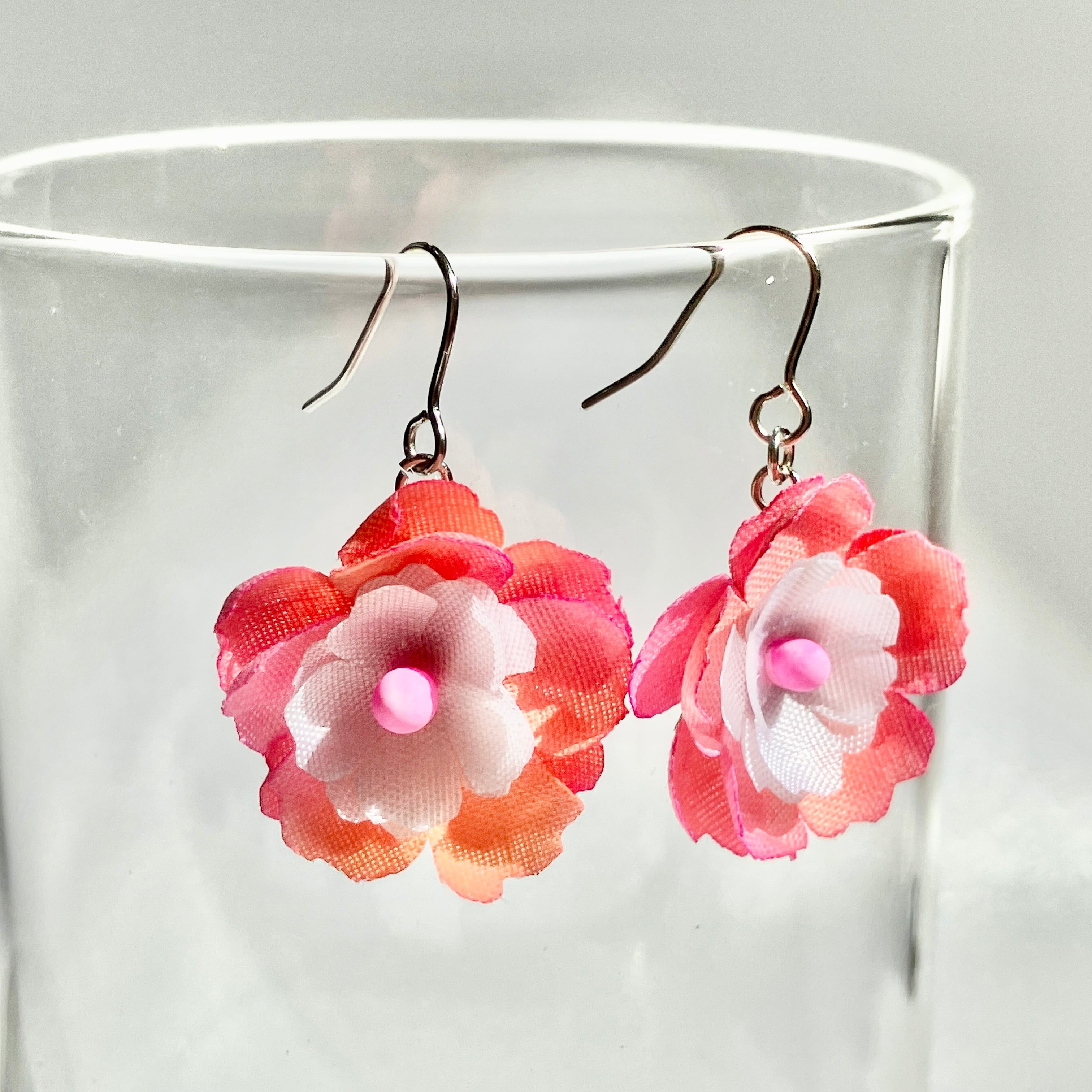 【一点もの】手染め布花《彩》桃色の花ピアス(イヤリング交換可) 軽い ピンク